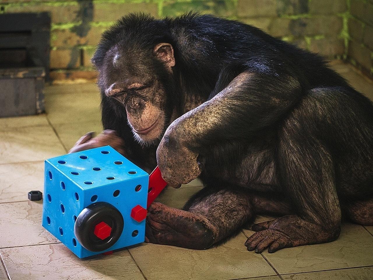 «Правда, им ненадолго хватает, но тем не менее это их развивает. Они разглядывают, кто-то прижимает, играет как с куклой. Кто-то пытается разобрать, понять, как это устроено. Шимпанзе, например, они разбирают их очень быстро», — пояснил представитель парка.
