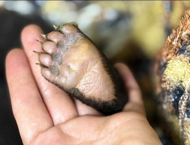 Лапа месячного медвежонка настолько мала, что умещается в человеческой ладони.