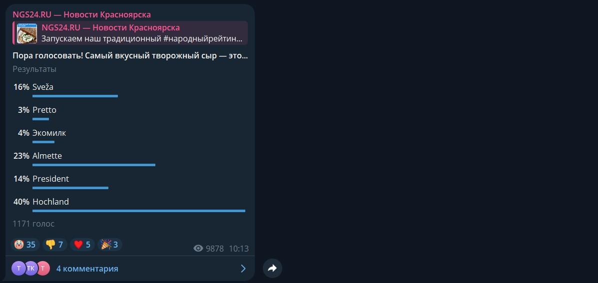 В ходе опроса, где варианты предложили сами подписчики, красноярцы выбирали из шести марок творожного сыра: