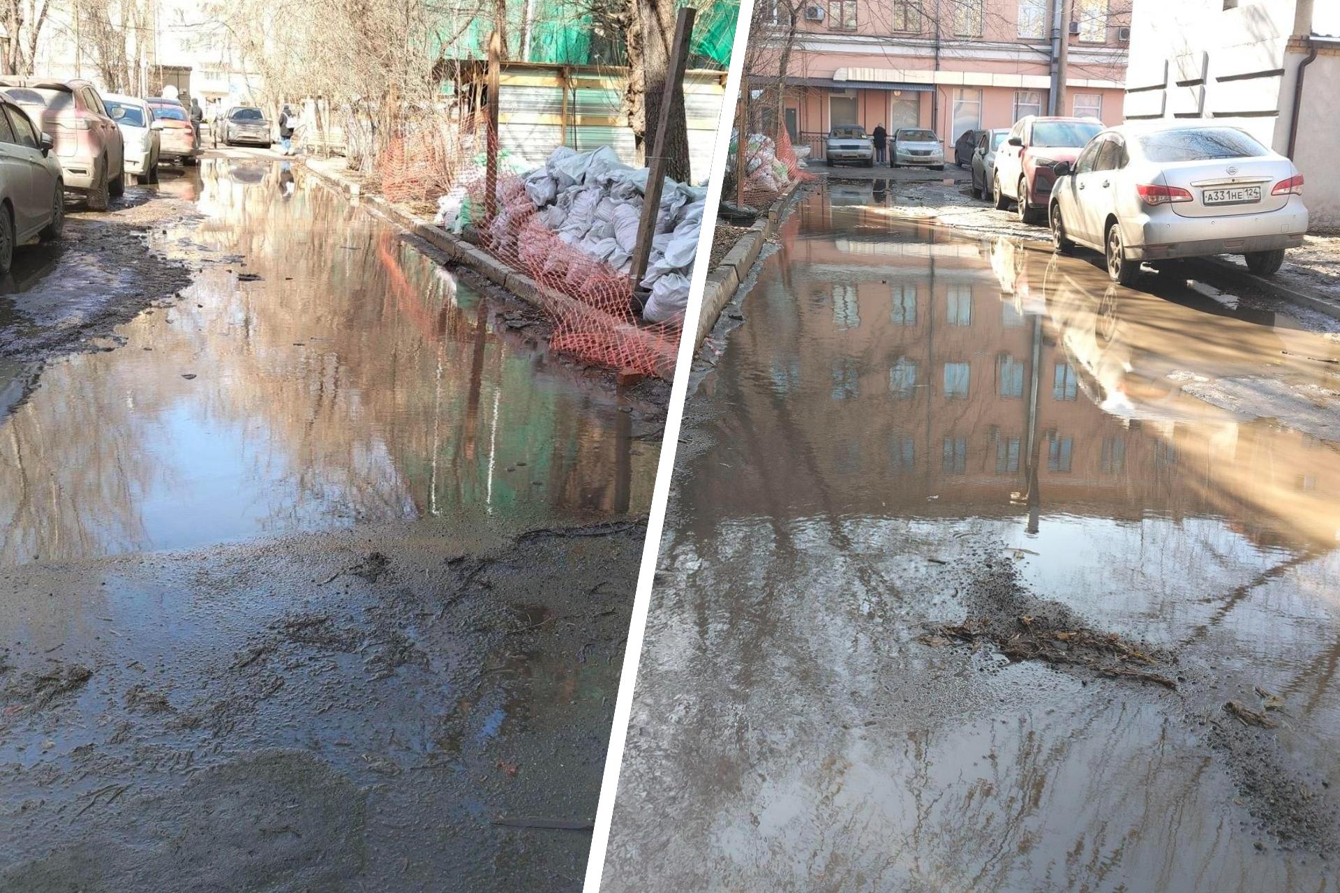 С приходом весны дворы и тротуары Красноярска вновь заполнились водой, превратившись в труднопроходимые участки. На призыв отметить такие места горожане откликнулись многочисленными фотографиями и сообщениями с адресами.
