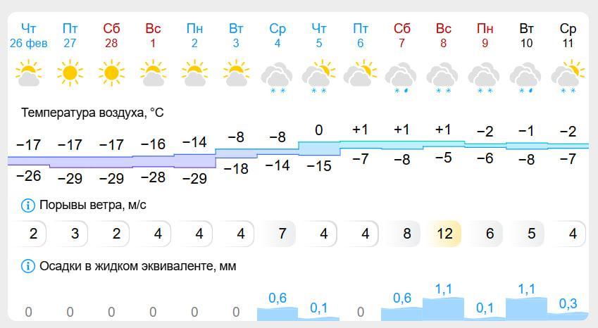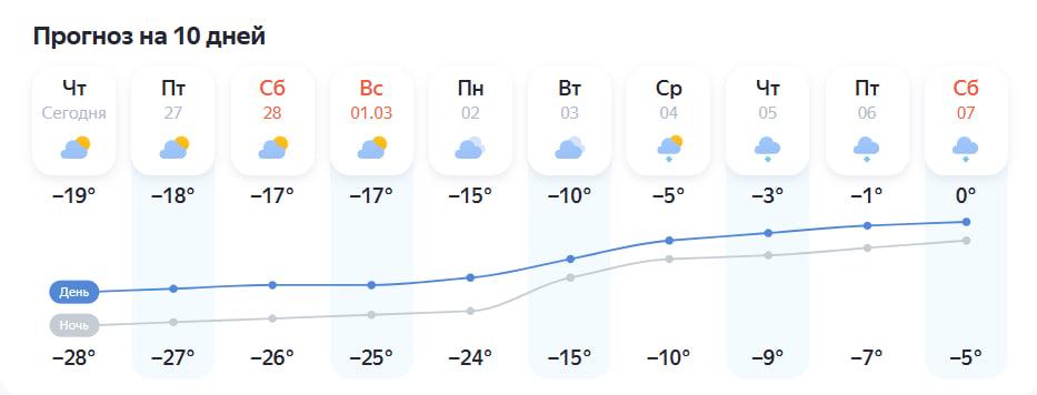 Метеорологи редко дают долгосрочные прогнозы, однако погодные агрегаторы предсказывают потепление. Согласно «Гисметео», температура начнет повышаться в марте. Аналогичные данные приводит сервис «Яндекс.Погода».