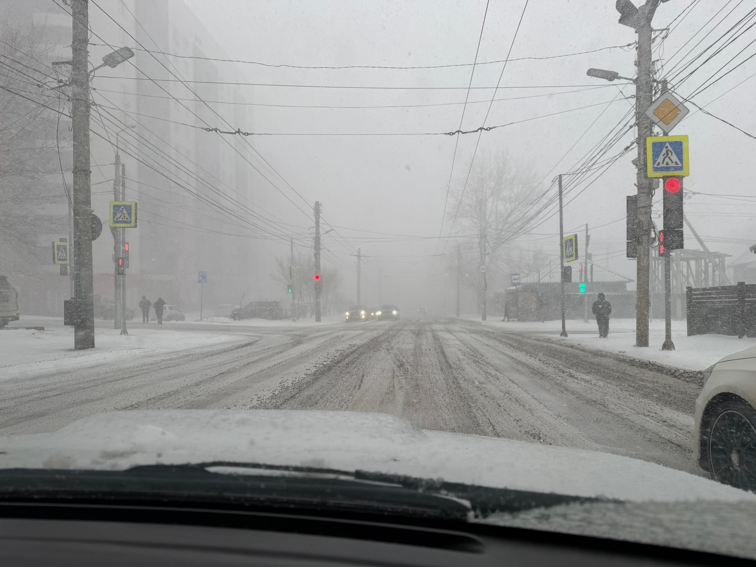 Метель в Красноярске снизила видимость до нуля