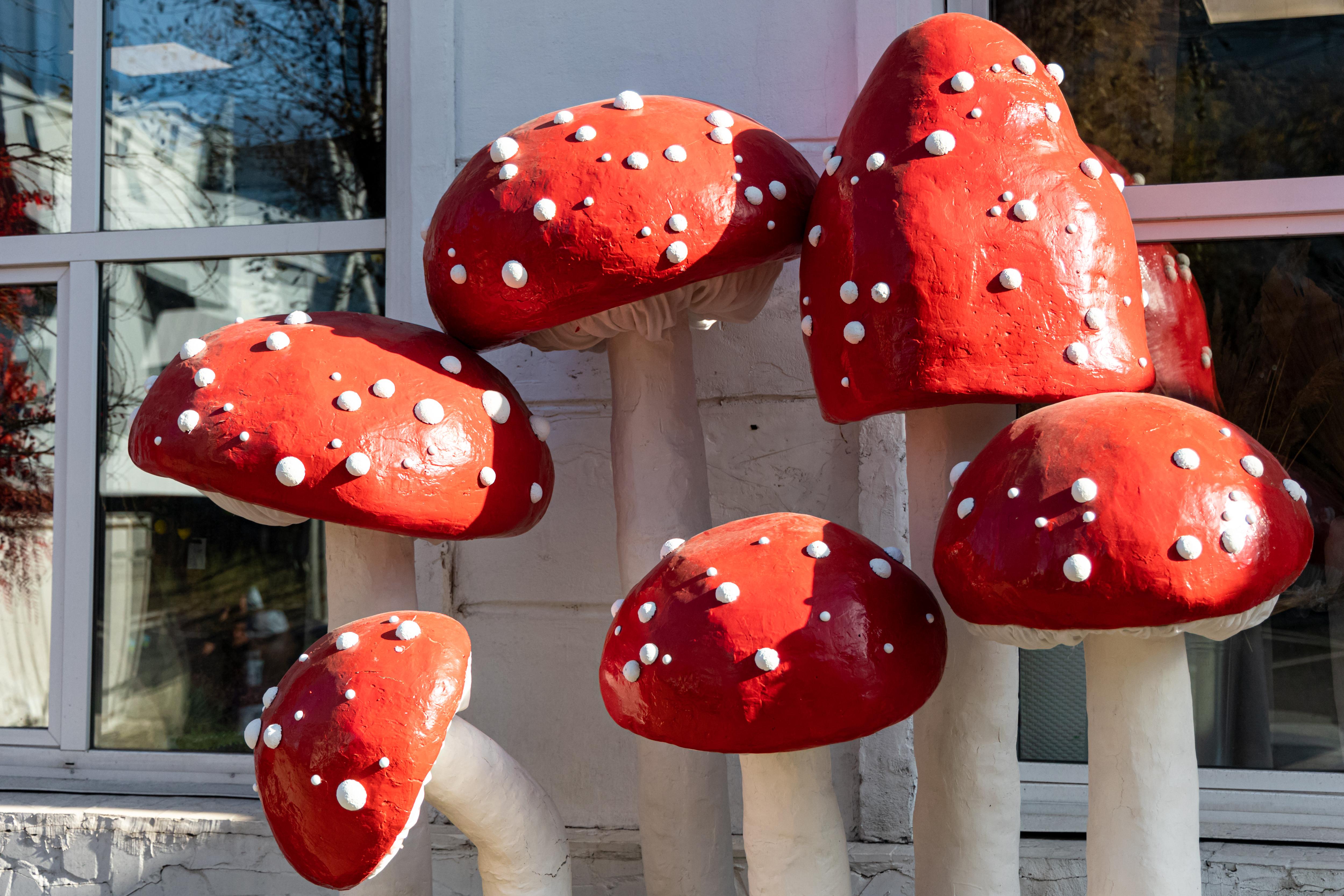 В центре Красноярска начали снимать крупные мухоморы, которые «выросли» осенью 2025 года у салона Divodecor по адресу улица Диктатуры Пролетариата, 40.