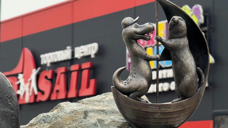 Согласно сообщению на сайте торгового центра, этого грызуна разместили на паруснике. Компанию ему составляет динозавр Грек, олицетворяющий, по задумке авторов, детство, радость и семейный отдых.