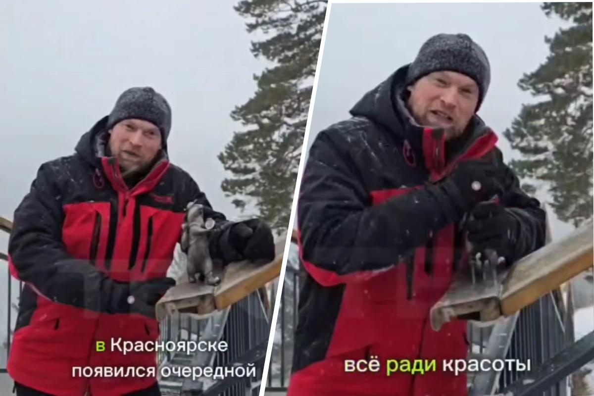 Фигурку суслика-туриста установили на Торгашинской лестнице в Красноярске.