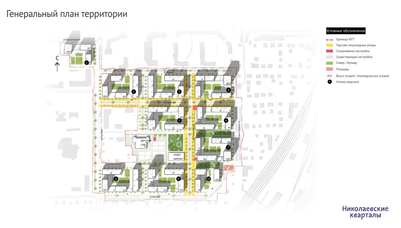 Жилой комплекс «Николаевские кварталы» строится в границах улиц Копылова, Пушкина, Бограда, Карла Либкнехта и Ленина. Группа «Стройинновация» получила этот участок на торгах для комплексной застройки 10 кварталов общей площадью 18 гектаров.