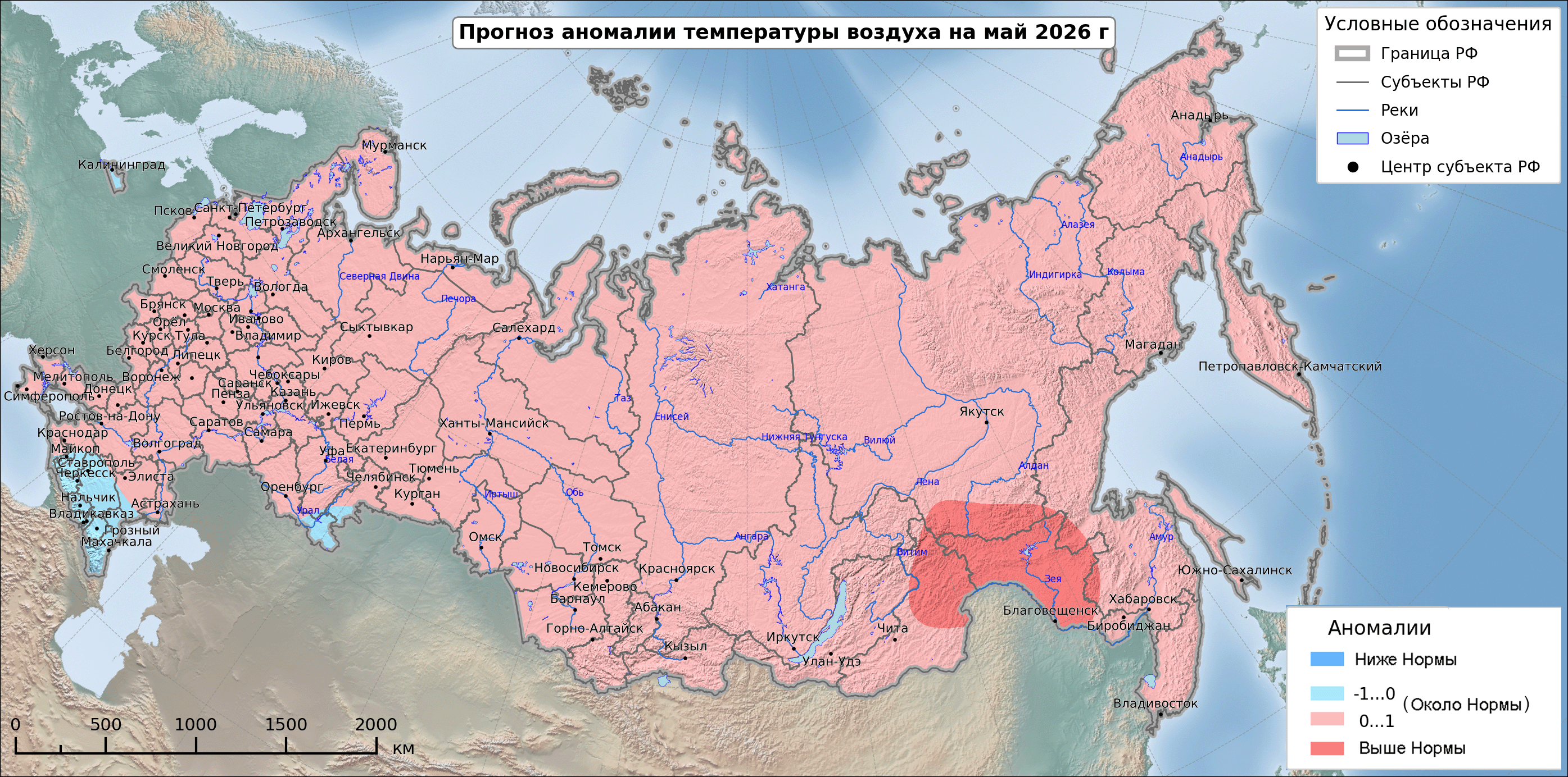 Май также не принесет температурных аномалий: значения останутся около нормы, соответствующей 10,4 градусам для Красноярска. При этом синоптики отмечают, что месяц будет немного теплее обычного, а количество осадков ожидается на среднем уровне.