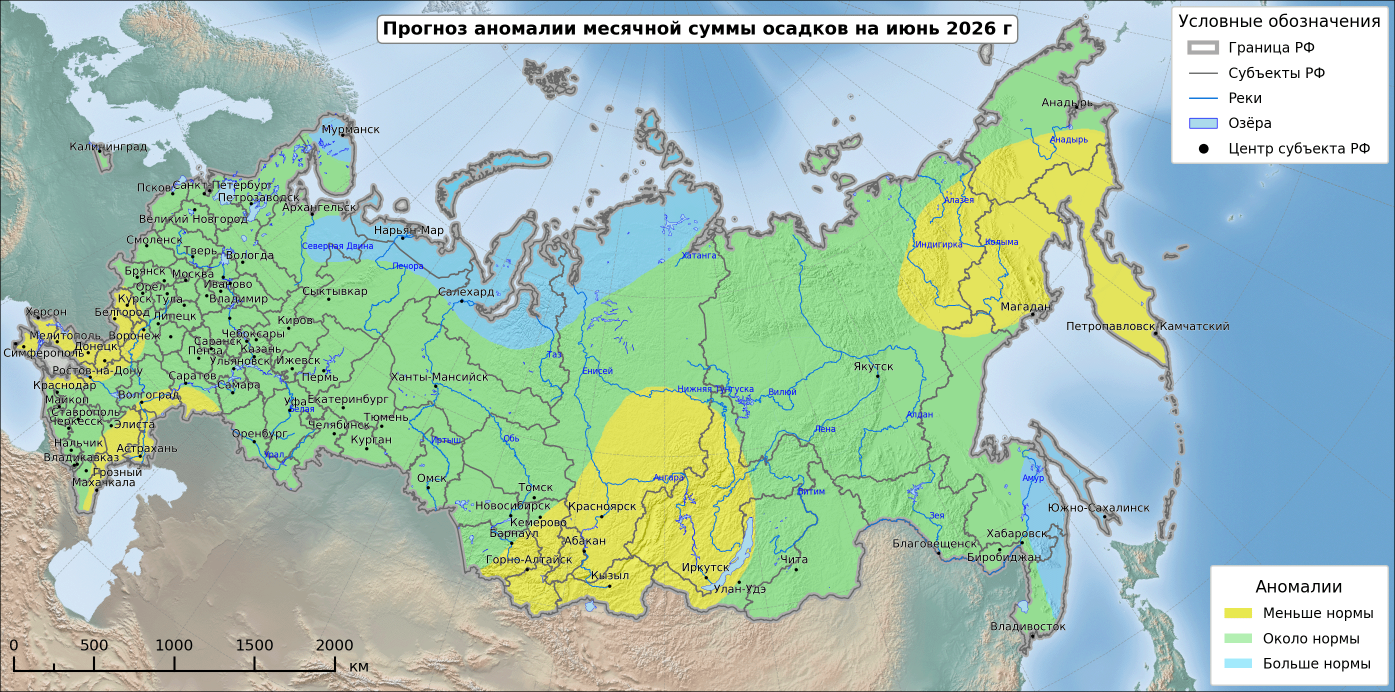 Российский Гидрометцентр опубликовал вероятностный прогноз температурных значений и количества осадков на период с апреля по сентябрь 2026 года. Согласно этому прогнозу, летние месяцы в Красноярском крае ожидаются более засушливыми по сравнению со средними многолетними показателями. Однако долгосрочные прогнозы носят вероятностный характер и могут не оправдаться.