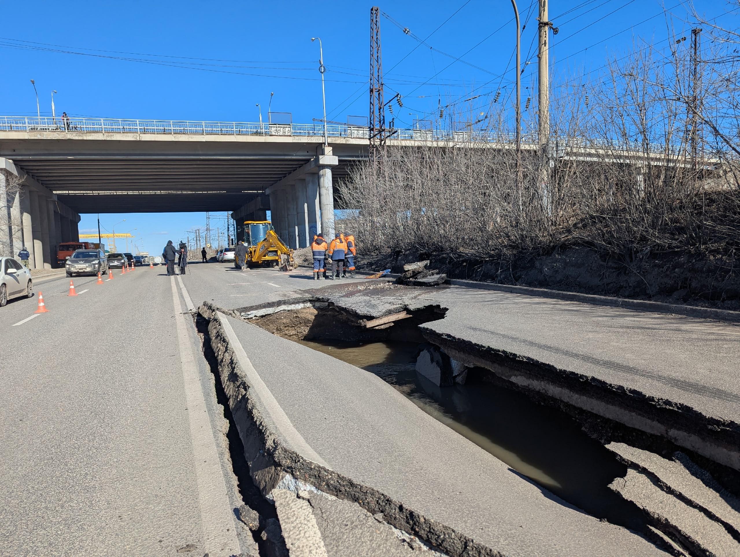Дорожное покрытие провалилось 9 апреля на улице Семафорной, движение в этом месте закрыто. Водителям предложили альтернативные маршруты.
