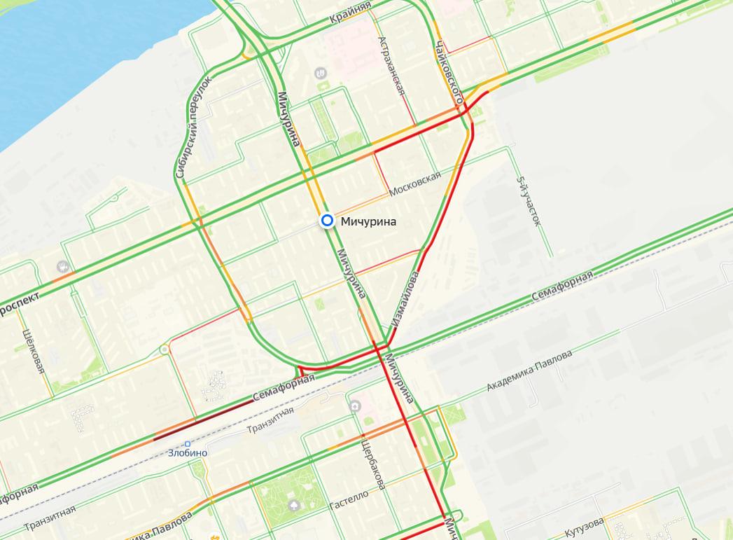 Крупная просадка асфальта образовалась днём 9 апреля на улице Семафорной в Красноярске, в районе её пересечения с улицей Мичурина. Движение на этом участке полностью перекрыто, что привело к образованию заторов.